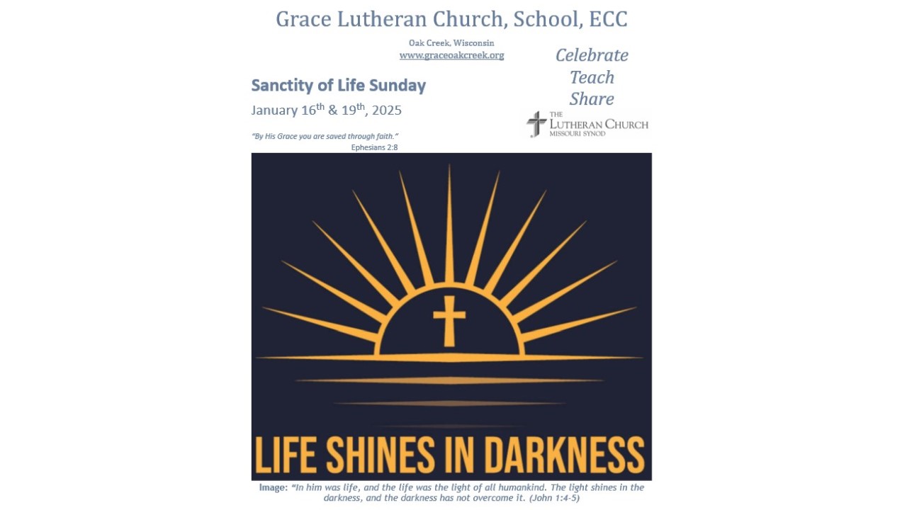 January 19, 2025Worship Video – Sanctity of Life Sunday – January 19, 2025 In Sanctity of Life Sunday, Sermons00 Sanctity of Life Sunday January 19, 2025 This is the live streaming video from Facebook of the 8:00 am Sunday Service. Click here to view, print, or download the Worship Bulletin.